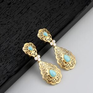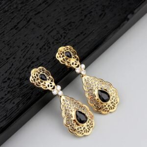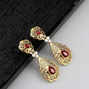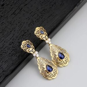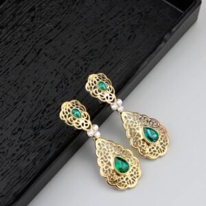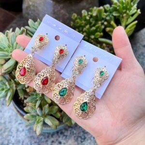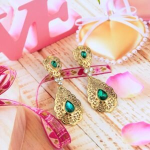 استمتع بأناقة تقليدية مع حلقات الأذن المغربية الأصيلة، مصنوعة من كريستال ذهبي عالي الجودة. تضيف لمسة فخامة وأصالة لإطلالتك في الأعراس والمناسبات، محافظة على جمال ثقافة المغربية بأسلوب معاصر.