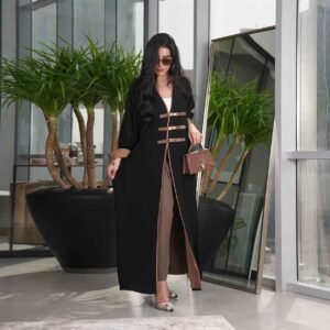 استمتع بأناقة لا مثيل لها مع فستاننا الطويل ذو الرقبة على شكل حرف V، مزيج مثالي بين جمال الجلابية المغربية وفخامة عبايات الخليجية. يضفي هذا الفستان لمسة أنثوية وأناقة لا تضاهى، مما يجعله خيارًا مثاليًا للمناسبات الخاصة والسهرات الراقية